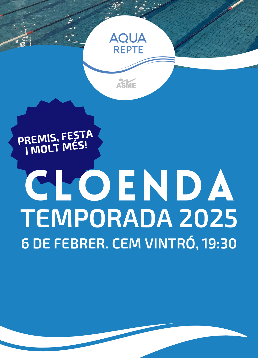 Aquest acte serà una trobada de tots els participants de l’AquaRepte d’ASME, un espai per compartir, posar cara a tanta constància i tancar la temporada com es mereix.