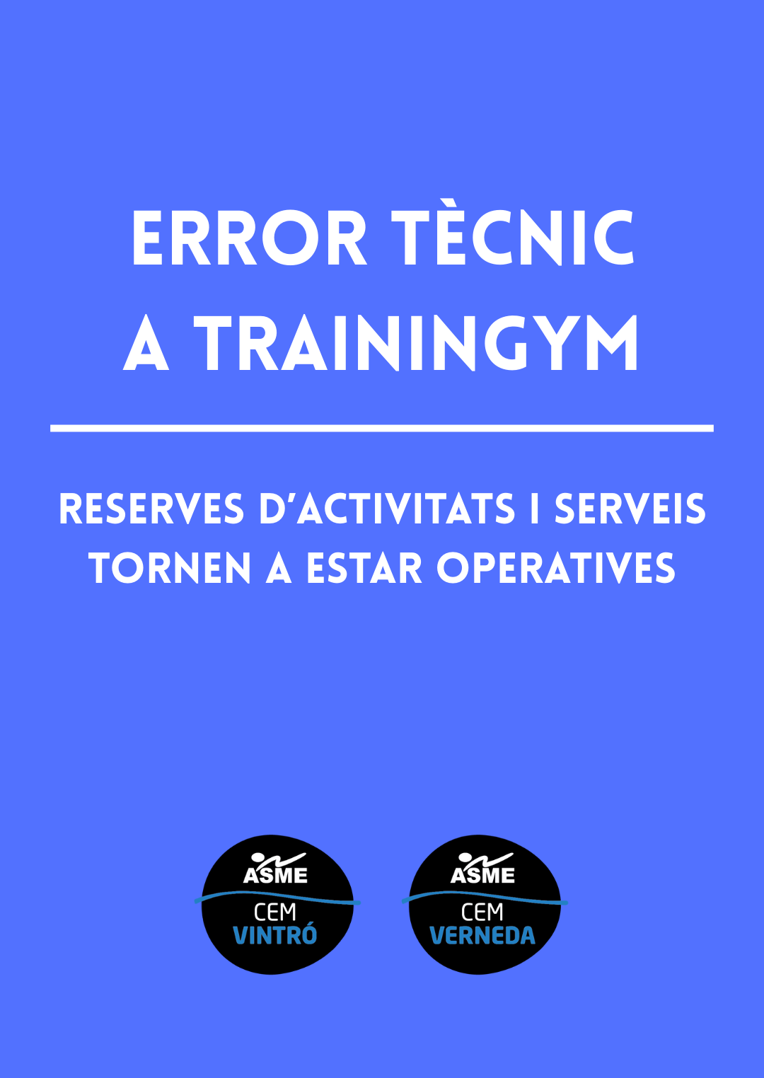 La pràctica esportiva i les reserves funcionen amb normalitat i la incidència ja ha estat solucionada.